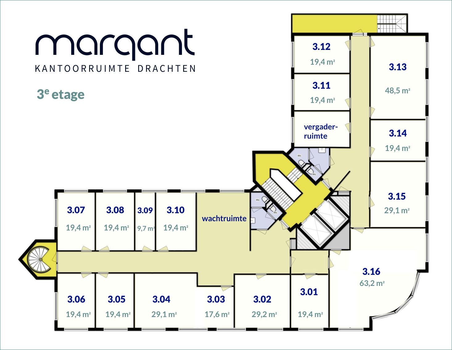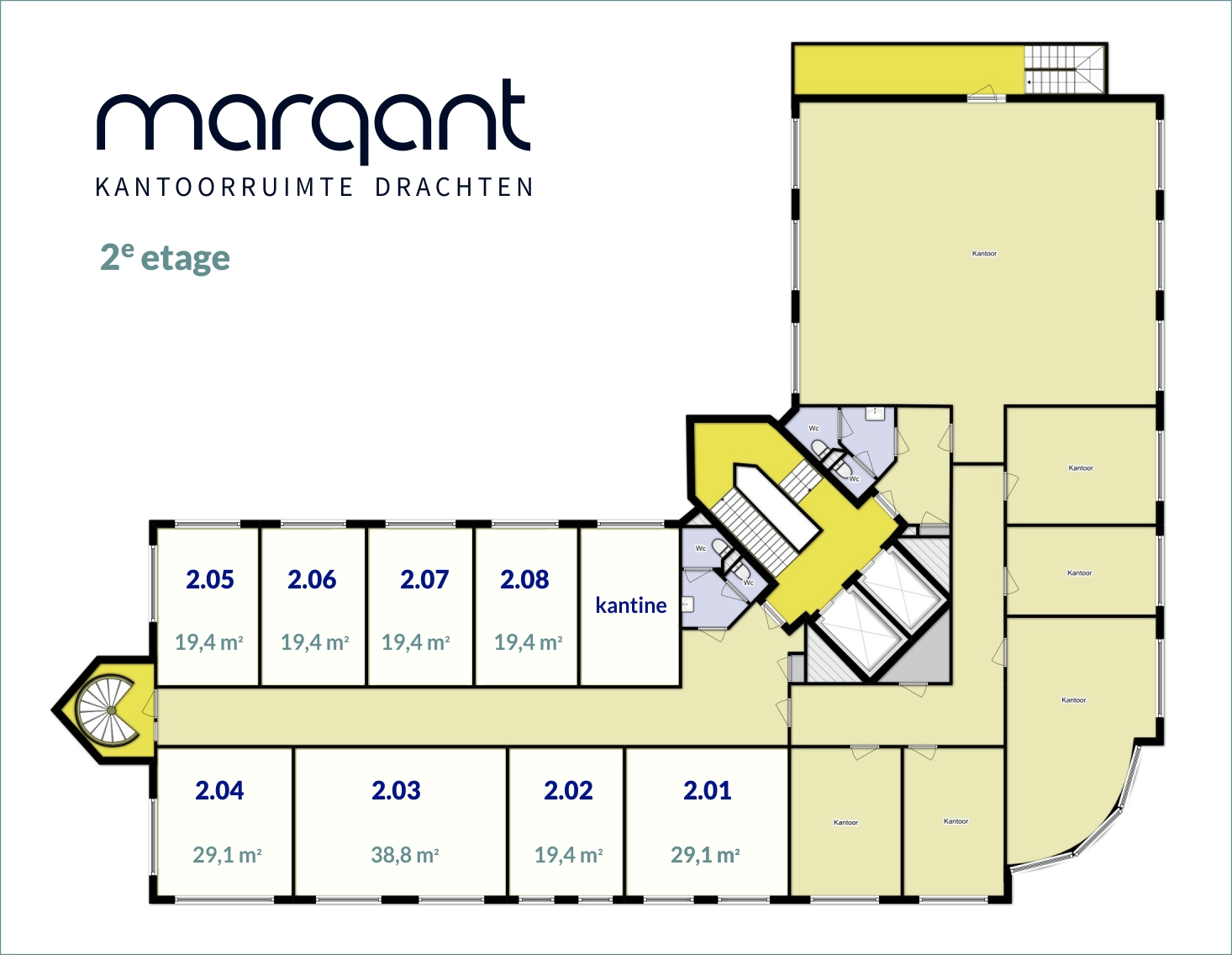 De kantoren in het Marqant gebouw zijn er voor ondernemers in alle soorten en maten. Het pand, voorheen bekend als Centrada, kent vier bouwlagen van elk 560 m2. De eerste twee etages zijn bestemd voor grotere organisaties. Als huurder maakt u gebruik van de fullservice dienstverlening van Moar! als kantoorinrichting, ict-diensten, de koffievoorziening en meer Moar!
